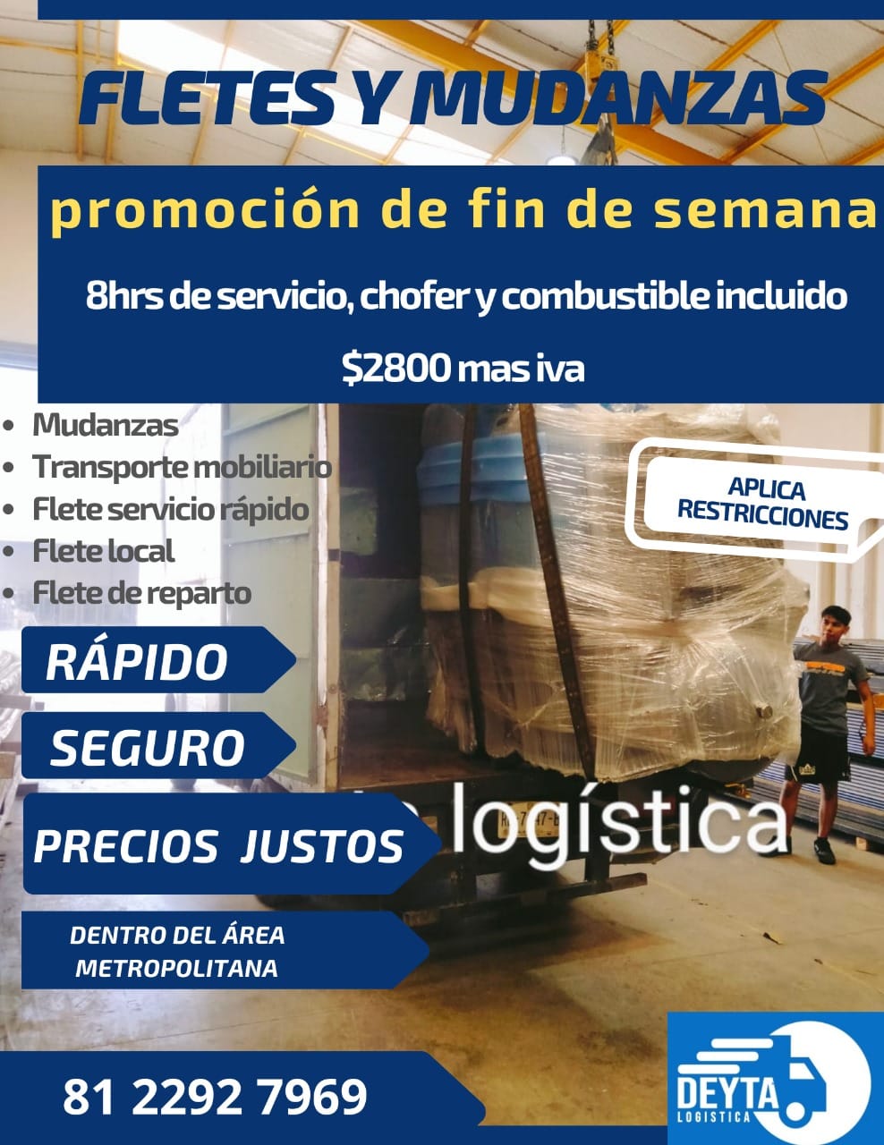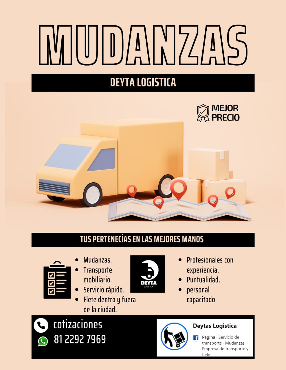 En Deyta Fletes somos una empresa con más de 10 años de experiencia en el ramo, ofreciendo servicios de fletes, mudanzas y transporte inmobiliario con una misión basada en la mejora continua, la responsabilidad, el compromiso, la seriedad y la honestidad. Utilizamos equipos adecuados y personal capacitado para garantizar un servicio seguro y de calidad en cada traslado.